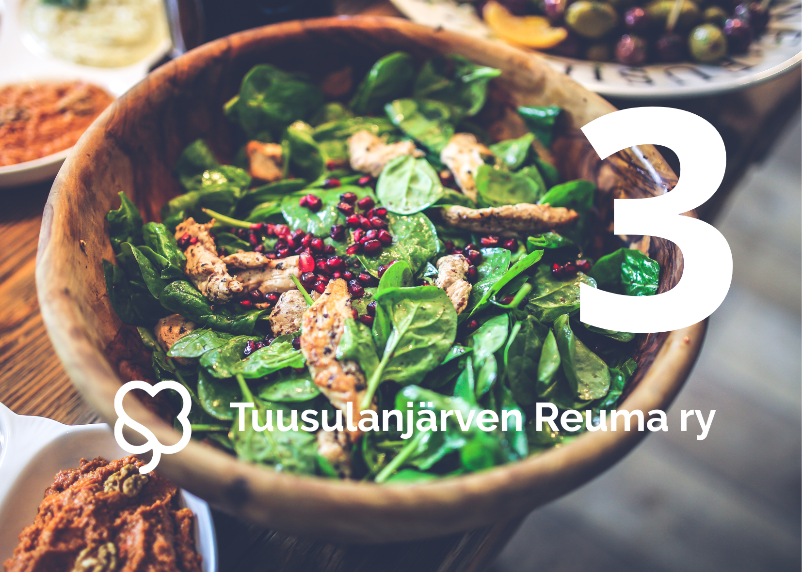 Saatko riittävästi proteiinia? - Miten hyödyntää uusia proteiinin lähteitä? - Suola, nesteenpoistolääkkeet ja riittävä nesteen saanti - Kenellä tarvetta lisäravinteille? - Kasvissyönti ja lisäravinteet - Maitohappobakteerit ja suoliston kunto - Erityistilanteet, esim. kortisoni, kihti, FODMAP, verensokeri Tilaisuudet sopivat kaikille huomioon ottaen reumasairauksien ja niiden lääkitysten erityistarpeet.