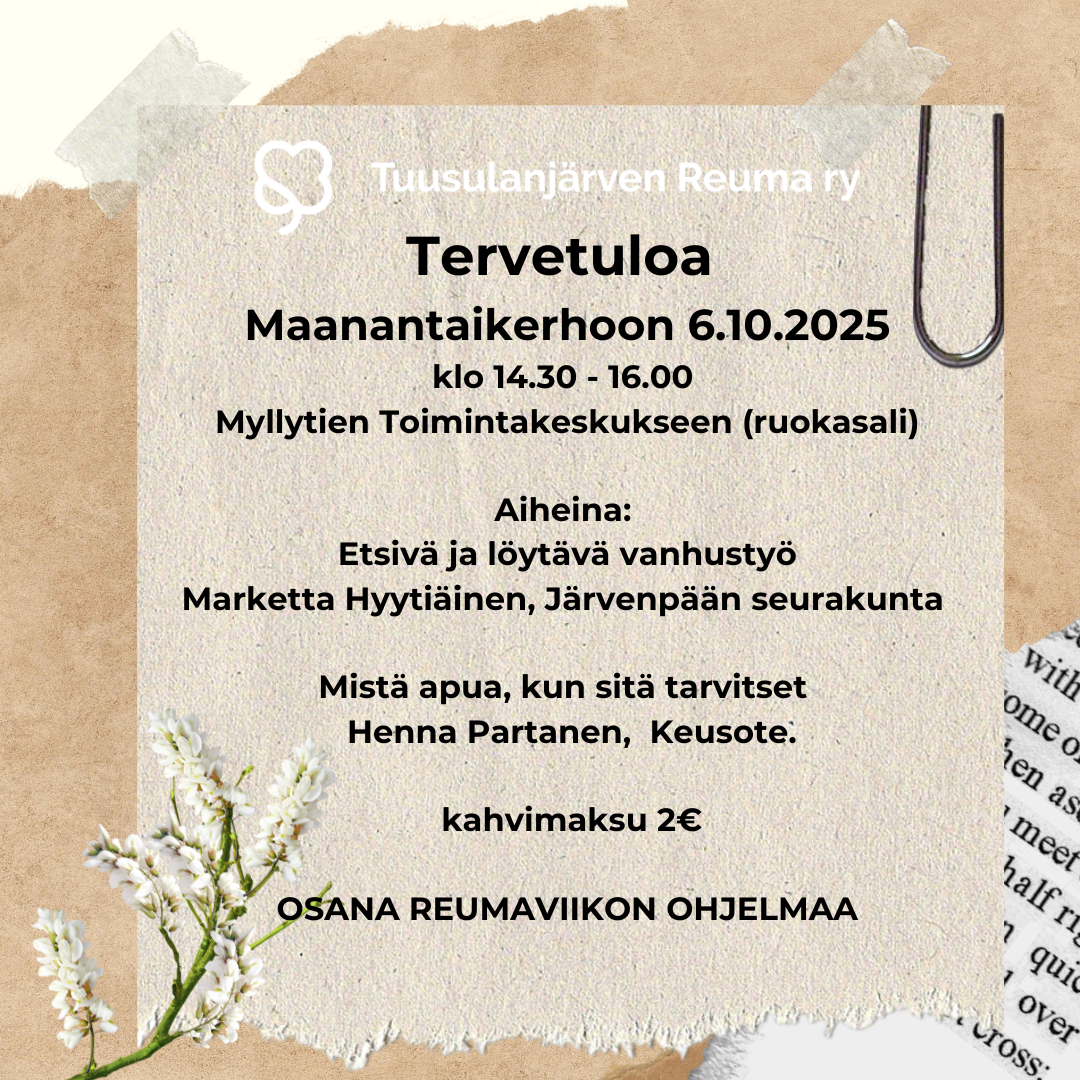 Tuusulanjärven Reuman ohjelmaa Reumaviikolla: