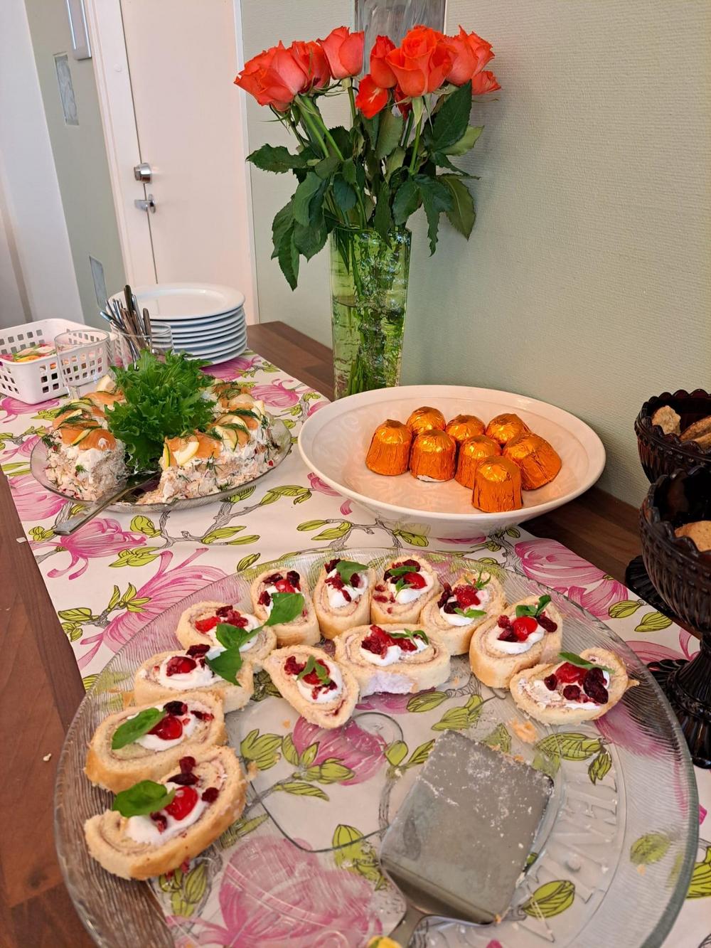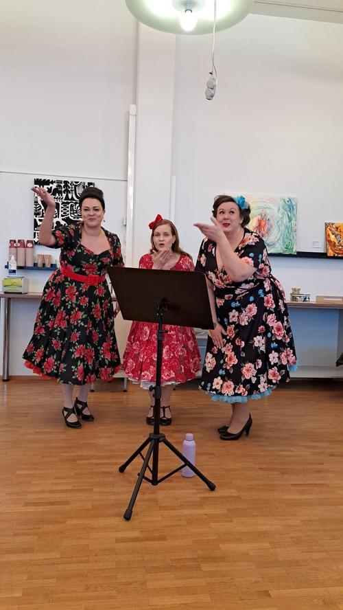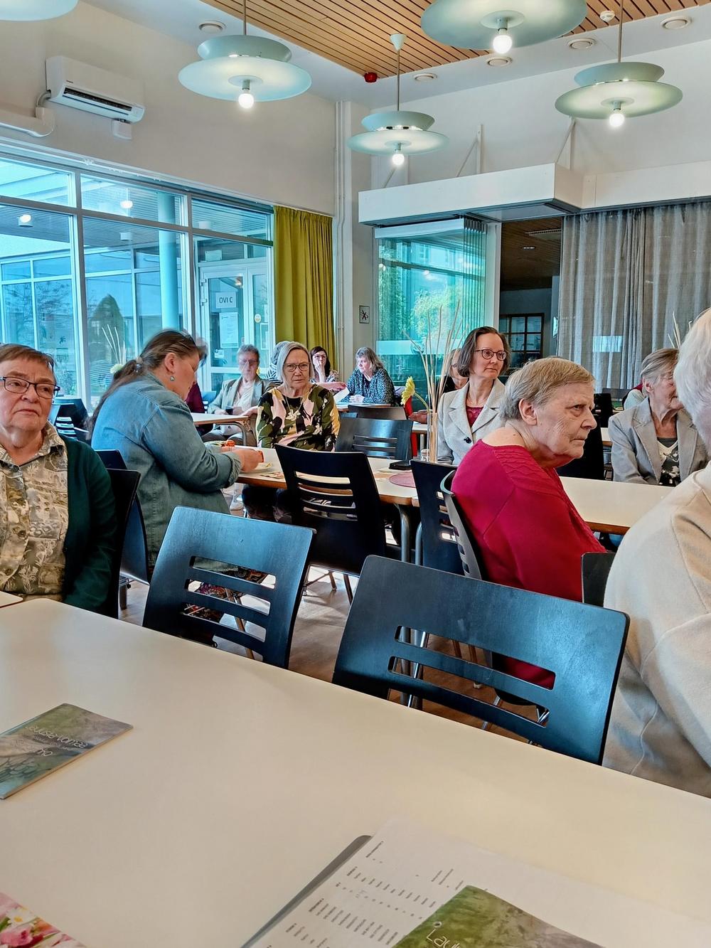 Nelisenkymmentä yhdistysläistä saapui juhlimaan kevättä ja tulevaa kesää tänään keskiviikkona 21.5. Toimintakeskukseen Myllytiellä. Runsaan kahvipöytätarjoilun lisäksi Tyllilyylit, kolmen naisen lauluryhmä, viihdytti juhlavieraita vanhoilla iki-ihanilla iskelmillä ja elokuvasävelmillä.