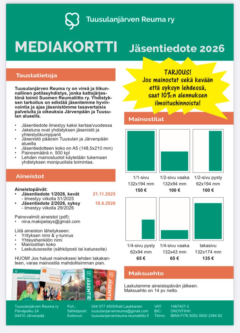 Jos mainostat nyt syksyn 2026 jäsentiedotteessa, saat 10% alennuksen ilmoitushinnoista.